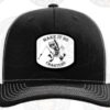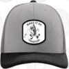 Our Trucker hat features a hand embroidered patch and customized side stitching.� Available in Black front with white back or Grey front with Charcoal back.